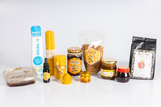 Producimos y comercializamos productos derivados de la apicultura, como miel, propóleo, polen, panales y velas.